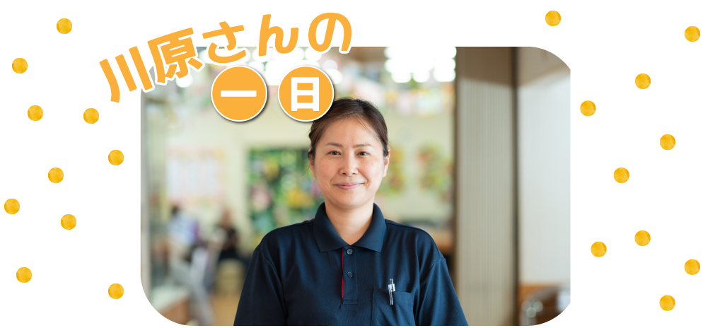 体力的に大変な時もありますが、利用してくださる方が、「川原さんに会いに来たよー。」って言っていただけると嬉しくて自然と笑顔になります。