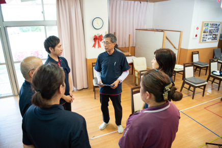 3時におやつを食べて、利用者様の体調にあわせて、マッサージしたり運動したりしています。